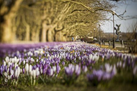 Warto jednak pamiętać, że krokusy są bardzo wrażliwe na zniszczenia. Obowiązuje zakaz wchodzenia na trawniki, na których rosną kwiaty — nawet jeśli wydaje się, że nie niszczymy roślin, możemy uszkodzić te, które dopiero przygotowują się do kwitnienia. Na szczęście organizacja przestrzeni pozwala na wykonywanie pięknych zdjęć z alejek i wyznaczonych miejsc.