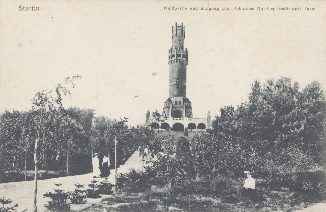 Na początku XX wieku, na najwyższym wzniesieniu obecnego Lasu Arkońskiego, wybudowano 45-metrową wieżę widokową poświęconą Johannesowi Quistorpowi (niem. Johannes-Quistorp-Gedächtnis-Turm). Pomnik zaprojektowany został przez architekta Franza Schwechtena (1841-1924). Budowę rozpoczęto w lipcu 1900 roku, zaś uroczyste otwarcie wieży nastąpiło 14 maja 1904 roku.
