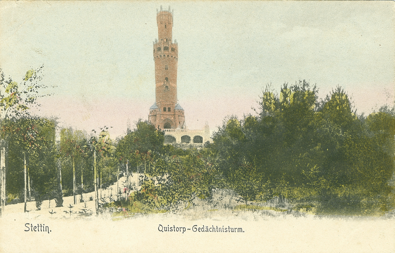 Wzniesiona w latach 1900-1904 okazała wieża widokowa w Lesie Arkońskim, dawnym Eckerberger Wald, powstała z inicjatywy syna Martina Quistorpa (1860-1929), darzącego wielką miłością swojego ojca, znanego i cenionego filantropa Johannesa Quistorpa (14.11.1822-09.05.1899)